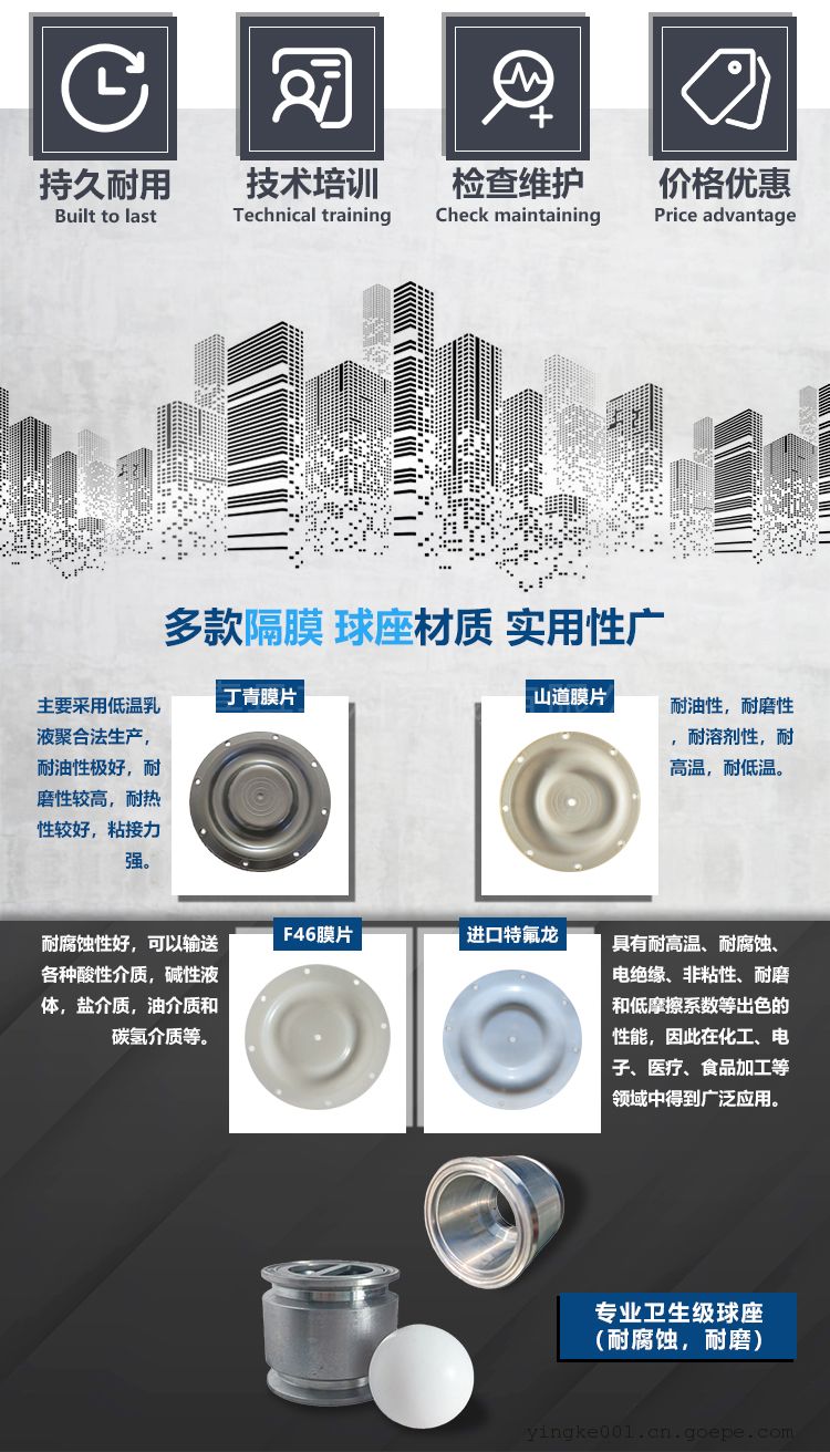 Yingke is committed to automation research and development. Yingke Company is a modern high-tech enterprise integrating scientific research, design, manufacturing, sales and service. YK electric actuator has the characteristics of compact structure, exquisite appearance, intelligent control, excellent performance, excellent quality, and easy use;YK pneumatic device is mainly composed of cylinder, piston, gear shaft, end cover, seals, screws, etc.; the complete set of pneumatic devices should also include opening indication, travel limit, solenoid valve, positioner, pneumatic components, manual mechanism, signal feedback and other components. Yongjia County Yingke Pump Valve Co., Ltd. specializes in producing pneumatic butterfly valves, electric butterfly valves, pneumatic ball valves, pneumatic actuators, electric actuators, pneumatic three-way ball valves, electric three-way ball valves, pneumatic two-piece ball valves, electric three-piece ball valves, electromagnetic valves, pneumatic diaphragm pumps, electric diaphragm pumps, sanitary grade electric diaphragm pumps, stainless steel diaphragm pumps, aluminum alloy pneumatic diaphragm pumps, manual diaphragm pumps, fluorine-lined pneumatic diaphragm pumps, diaphragm metering pumps, Plunger metering pumps, metering dosing pumps and other automatic control products. Yingke will learn technology and provide high-quality services; emphasize efficiency and satisfy users with actions; expand publicity and open up new market situations; establish systems and establish a new corporate image; and strive to become a booster and trustworthy partner for our customers to take off their careers.- Name(chinese)